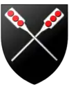 D'argent, à la clef et au pistolet de sable en sautoir, cantonnés de quatre molettes du même | |