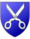D'azur à une paire de ciseaux d'argent ouverts en sautoir |