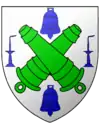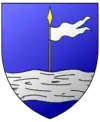 d'azur, au saint Maurice, monté sur un cheval, portant un guidon, le tout d'or, sur une terrasse de même et le guidon chargé d'une croix de saint Maurice (tréflée) de gueules |