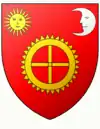 D'azur, à deux clefs d'or en chef et une lune du même en pointe | |