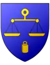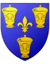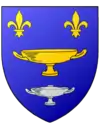 D'azur, à la coupe d'or accompagnée en chef de deux fleurs de lis du même et en pointe d'une coupe couverte d'argent |