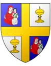Écartelé d'azur et d'argent à la croix d'or brochante, cantonnée aux 1er et 4e d'une Vierge de carnation, habillée de gueules, tenant l'Enfant-Jésus au naturel, lequel tient de la main dextre un pampre de vigne de sinople ; aux 2d et 3e d'un ciboire d'or |