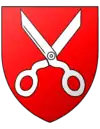 De gueules, à la paire de ciseaux d'argent, ouverts en sautoir |
