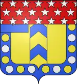 D'or, au pal d'azur chevronné d'or dans une bordure d'azur semée de besants d'or et d'argent alternatifs, canton des comtes ministres ; au chef des ducs de l'Empire brochant.[2],[5],[6],[17] |