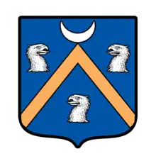 De... au chevron de... sommé d'un croissant de... accompagné de trois têtes d'aigle arrachées, les deux premières affrontées.