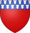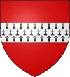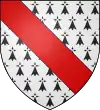 De gueules au lion d'argent, à la bande d'azur brochant sur le tout ; au chef de gueules soutenu d'azur et chargé de trois coquilles d'argent.[14] |
