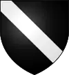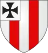 De sable, à la croix d'or, au lambel en chef [de gueules] brochant sur le tout.[7],[8] |