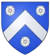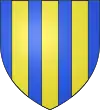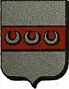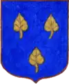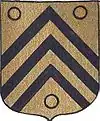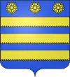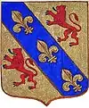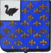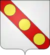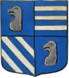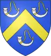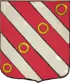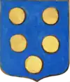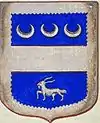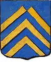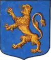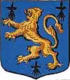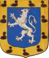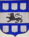 D'azur semé de besants d'or, au lion d'argent, la queue contournée, armé de gueules et lampassé d'or. |