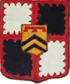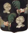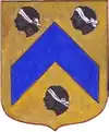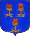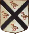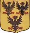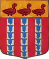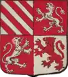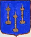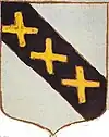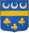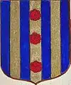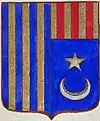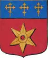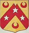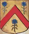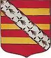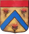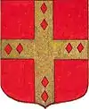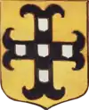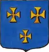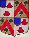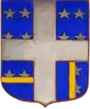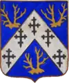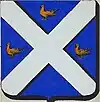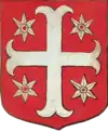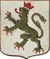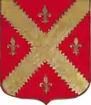 D'or à la croix treflée de sinople ; écartelé d'or au lion de gueules, sur le tout de gueules à deux pals d'or, chargés d'une fasce d'azur, fur chargée de trois losanges d'argent.