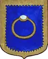 D'azur à l'anneau d'or chatonné d'argent, à la bordure dentelée de même. |