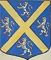 D'azur au sautoir d'or, accompagné de quatre lionceaux, armés & lampassés de gueules. |