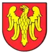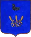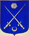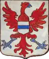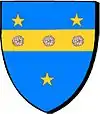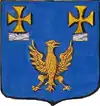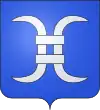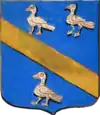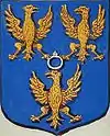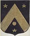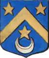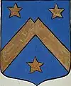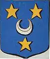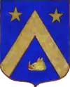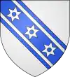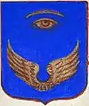 D'azur à un vol d'argent, surmonté de deux étoiles d'or. |