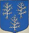 D'azur à trois bandes d'argent. |