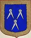 Trois compas ouverts d'argent surmonté d'une couronne, placés deux un sur fond d'azur. |