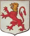 De sable au lion d'argent, armé & lampassé de gueules. |
