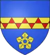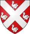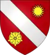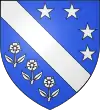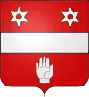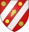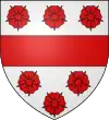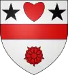 D'argent, au chevron de gueules, accompagné de 3 roses d’argent Il existe aussi : De gueules au chevron d’or, accompagné de 3 roses d’argent |