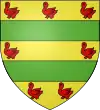 D'or, à 2 fasces de sinople, accompagnées de 7 merlettes de gueules en orle |