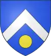 D'azur, au chevron d’argent, accompagné en pointe d’un besant d’or