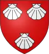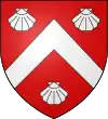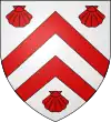 De gueules, au chevron d’argent, accompagné de trois coquilles du même |