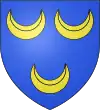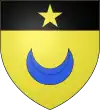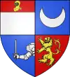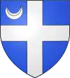 Coupé d’azur et de gueules, à la fasce d’argent sur le tout, soutenue d’un trèfle du même, et surmontée d’un croissant d’or