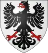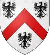 ![]() D'argent, à une aigle éployée de gueules, becquée et membrée d'or.[7] On trouve aussi: D'argent, à l'aigle de gueules, becquée, armée et membrée d'or, à la barre brochant sur le tout (branche cadette ? maintenue noble en 1668, également éteinte)