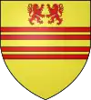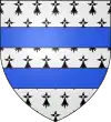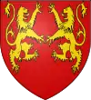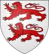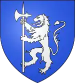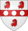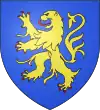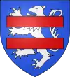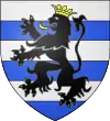 D'azur, au lion d’argent, lampassé et armé de gueules, à deux fasces alésées et brochantes du même.[8] |