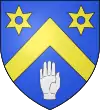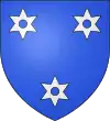 D'argent, à 3 merlettes de gueules ; au chef d’azur, chargé de 3 étoiles d’or