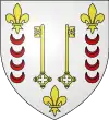 D'azur, à trois maillets d’argent, surmontés chacun d'une rose d’or