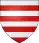 De gueules, à une couronne de deux branches de laurier d’argent ; au chef échiqueté d’argent et d’azur de 3 tires |