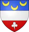 Tiercé en fasce, au 1 d’azur, à trois croissants d’or ; au 2 d’argent ; au 3 de gueules, à un trèfle d’argent