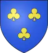 D'azur, à deux girons d'or, appointés et posés en chevron ; au chef d'argent chargé de trois couronnes ducales de gueules.[49],[50] Alias le chef chargé de trois fleurs de lys au pied nourri de gueules.[51],[50] |