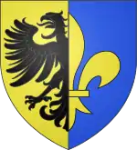 D'or, à l'aigle d'Empire de sable, mi-parti d'azur à une fleur de lys d'or.[15] |