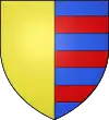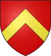 D'or au chef de gueules, chargé d'un lion issant d'or.[17] Alias de gueules au lion d'or issant d'une champagne de même.