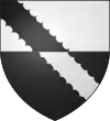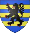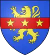 De gueules au lion d'argent et une bande d'azur brochante ; au chef de gueules soutenu d'azur et chargé de trois coquilles d'argent.[15],[16]