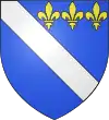 De gueules semé de fleurs de lys d'or à la bande d'argent sur le tout.[7]