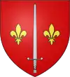 De gueules à deux épées d'argent en sautoir, la pointe en haut, au chef cousu d'azur chargé de trois étoiles d'or.[5]