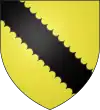 D'azur à la bande d'or chargée de trois alérions d'azur, alias de sable.[6] |
