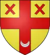 D'or, à la croix de gueules, accompagnée en chef de deux sautoirs alésés de même, et chargée, en pointe, d'un croissant d'argent.[7] |