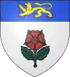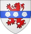 D'argent, au lion de gueules, à la fasce d'azur brochant sur le tout, chargée de trois roses d'argent.[8] |