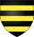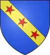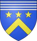 D'azur, au chevron d'or surmonté de trois étoiles de même ; au chef burelé d'argent.[15] |