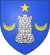 D'azur, à une tour d'argent, maçonnée de sable, surmontée d'une étoile d'or, accostée de deux croissants d'argent.[23] |