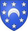 D'azur, au croissant d'argent, versé en abîme, accompagné de huit étoiles d'argent en orle.[39] |