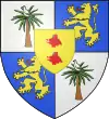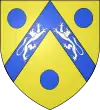 D'or, au chevron d'azur chargé de deux lions affrontés d'argent et accompagné de trois tourteaux d'azur.[20] |