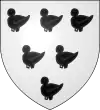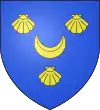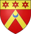 D'azur, au chevron d'or surmonté d'un croissant d'argent.[16] Alias d'argent, à un chevron d'azur chargé de trois croissants d'argent ; écartelé d'azur à trois étoiles d'or 2 et 1. |