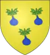 D'azur, à trois pommes de pin d'or, 2 et 1 ; au chef de même.[3]