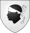 D'azur à la bande d'or, chargée de trois mouchetures d'hermine, accompagnée de deux croisettes d'or, une en chef, une en pointe, surmontées en chef [d'une tierce ondée] d'argent.[22]