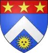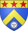 D'azur, au chevron d'or accompagné d'un soleil d'argent en pointe ; au chef d'or, chargé de trois étoiles de gueules.[25]
