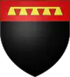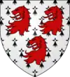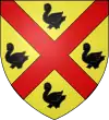 De gueules à l'aigle d'or accompagnée d'un orle de besants d'or.[29] Alias un orle de fers de lance d'argent.[29] |