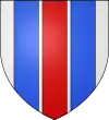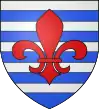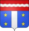 D'azur au pal d'argent accosté de quatre étoiles d'or ; au chef cousu de gueules chargé d'une fasce ondée d'argent.[13] |