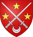 D'or au chevron de sable, accompagné en chef de trois étoiles rangées d'azur et en pointe d'un croissant de gueules.[6] |